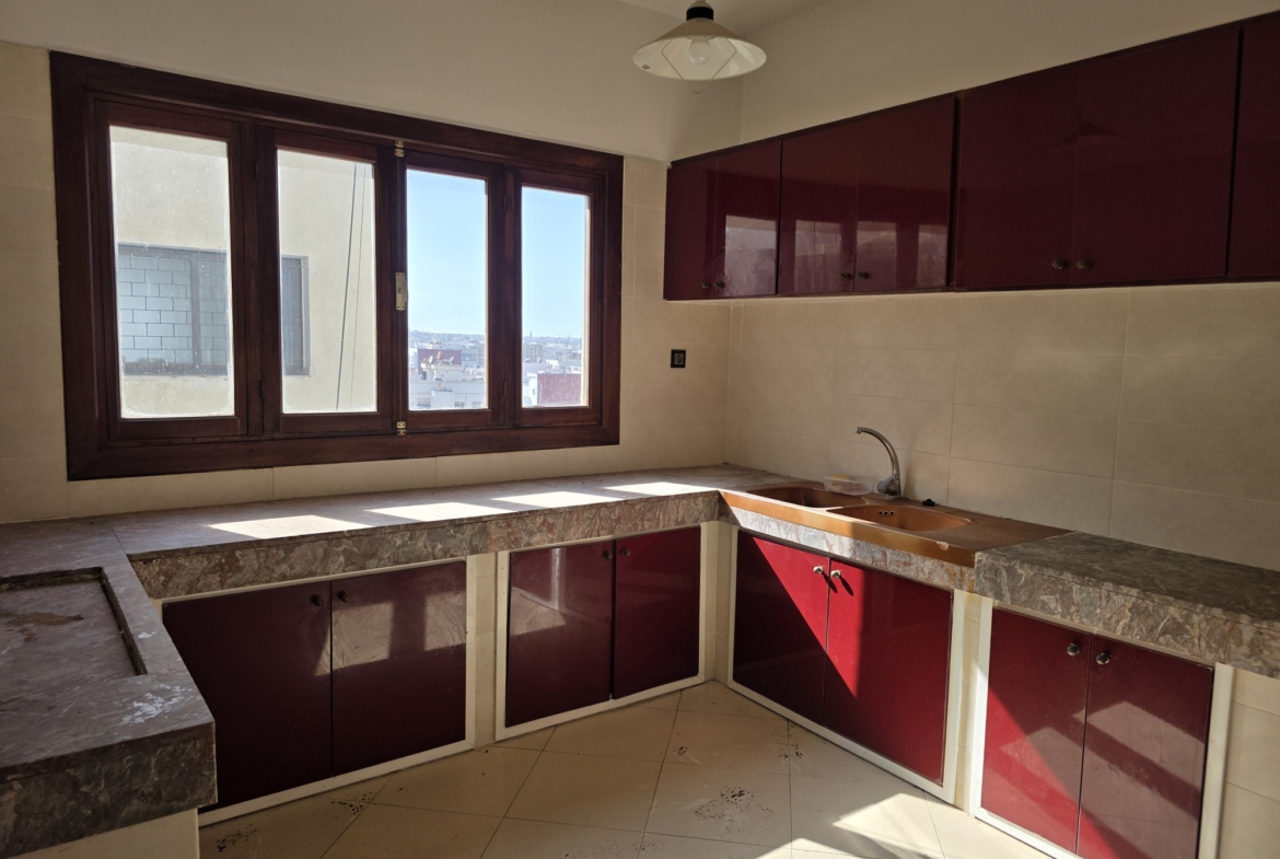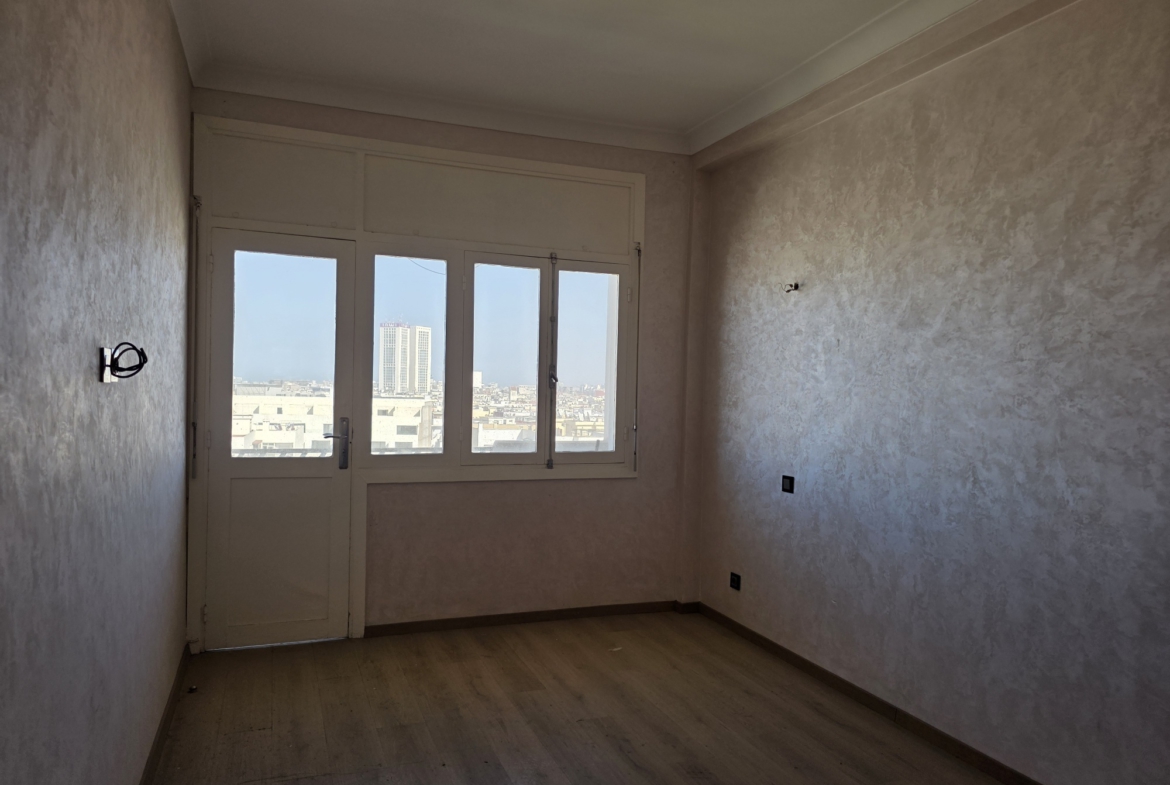Appartement deuxième main de 121 m² au 8ème étage avec ascenseur situé dans le quartier Maarif Extension. Il a une vue dégagée sur la ville et comprend :