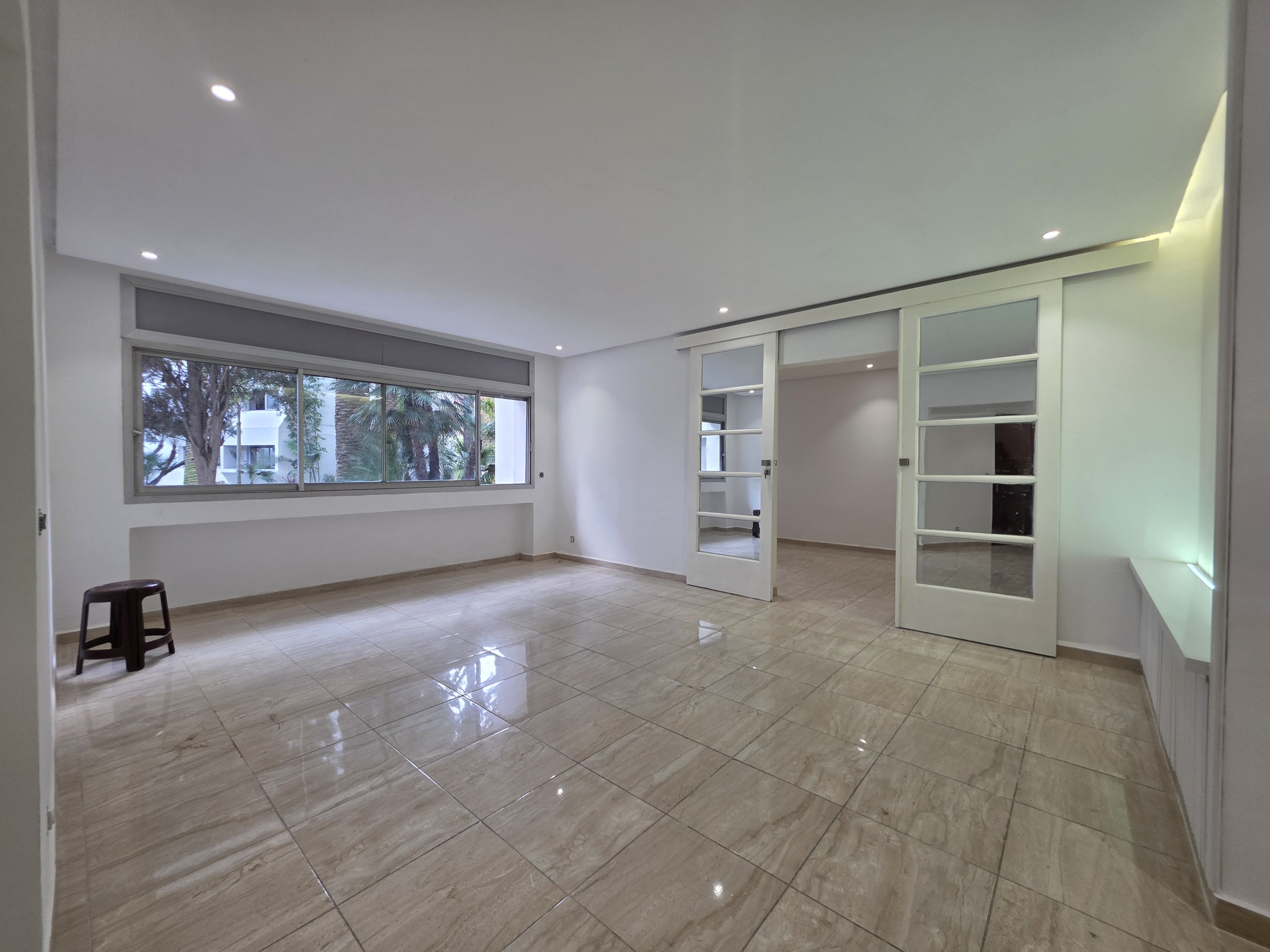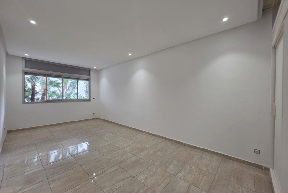Joli appartement traversant de 120 m² rénové en RDC d’une résidence fermée et sécurisée sur le Boulevard Moulay Youssef.