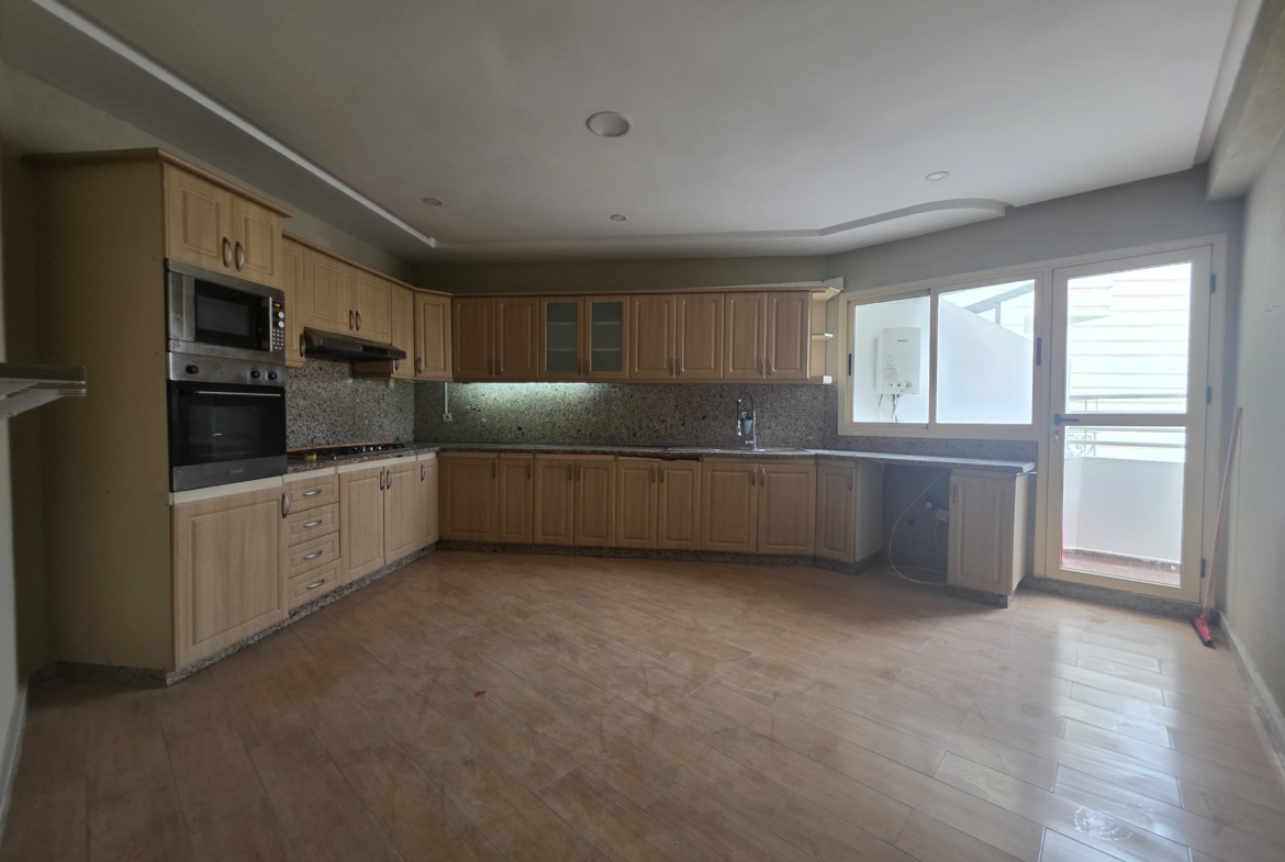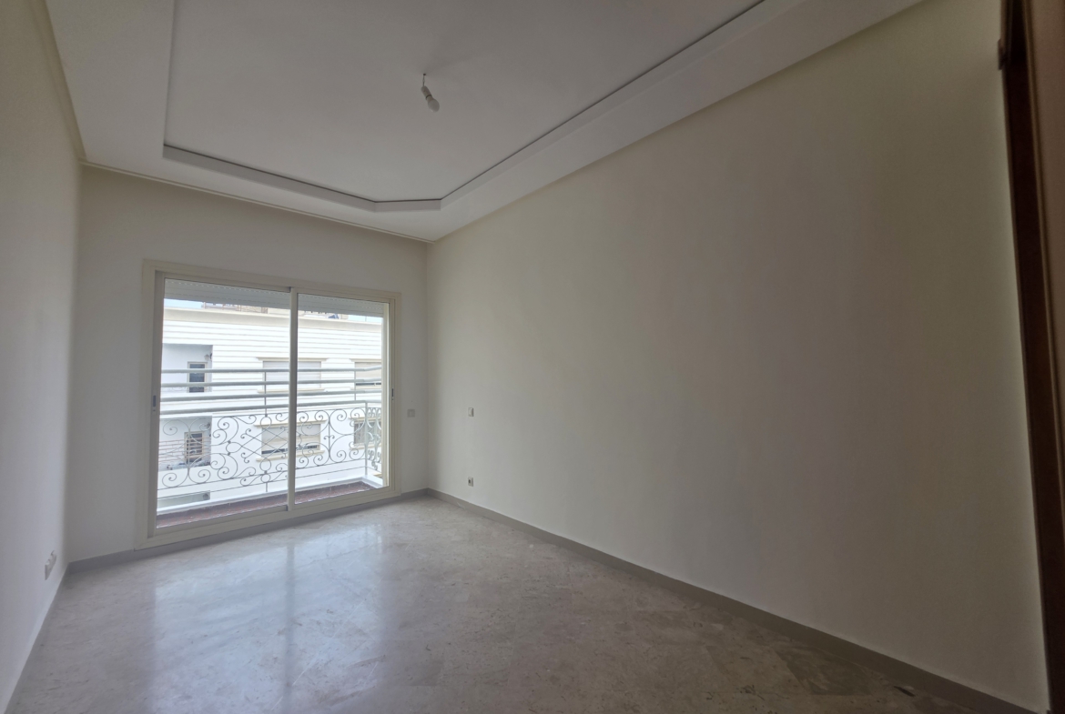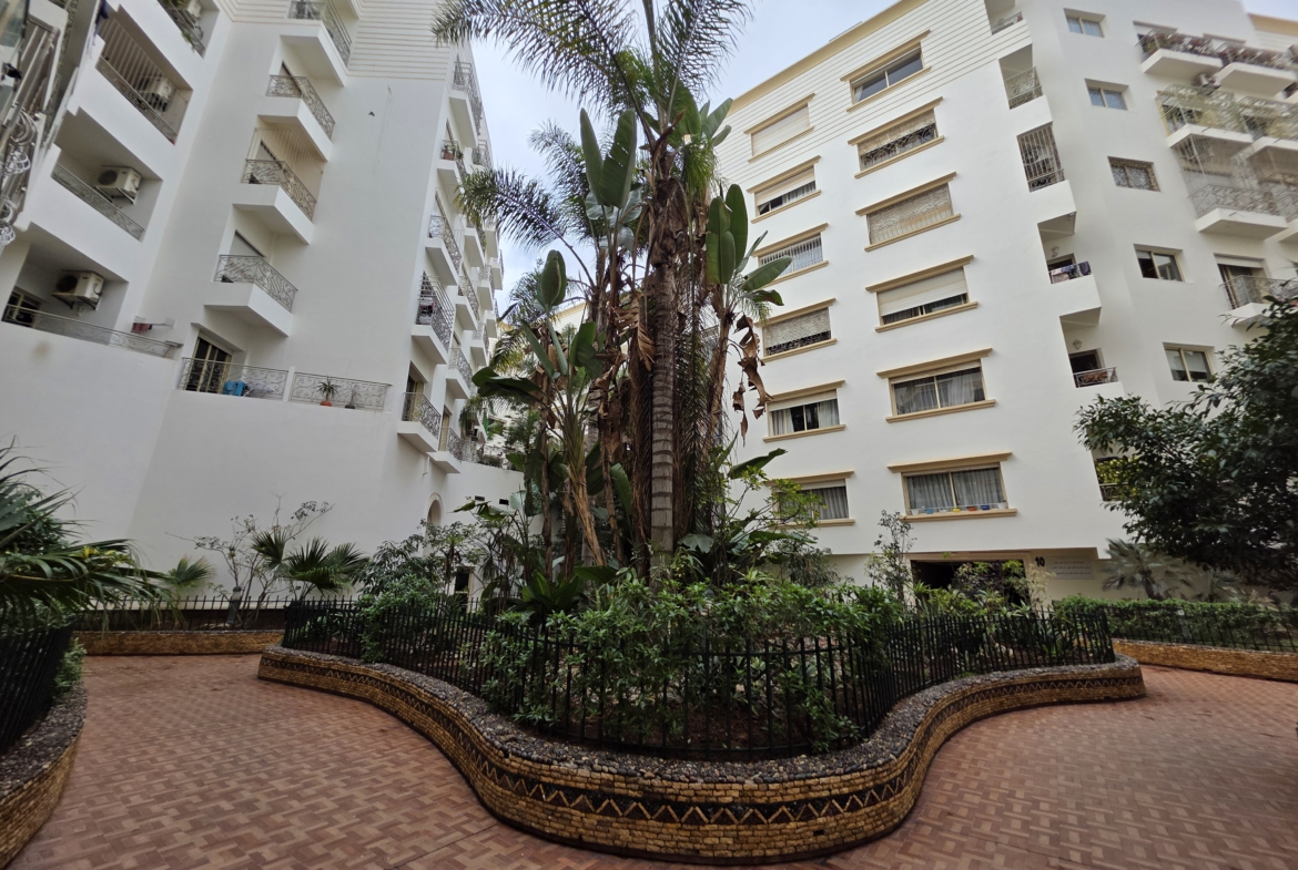 Bel appartement de 165 m² de surface habitable idéalement fraîchement refait à neuf situé au coeur de Bourgogne Ouest, dans le prolongement du Bd Sijilmassi et de toutes les commodités, au 5ème et dernier étage d’une résidence fermée bien entretenue et sécurisée qui date de 2011, exposé sud, sans vis-à-vis.