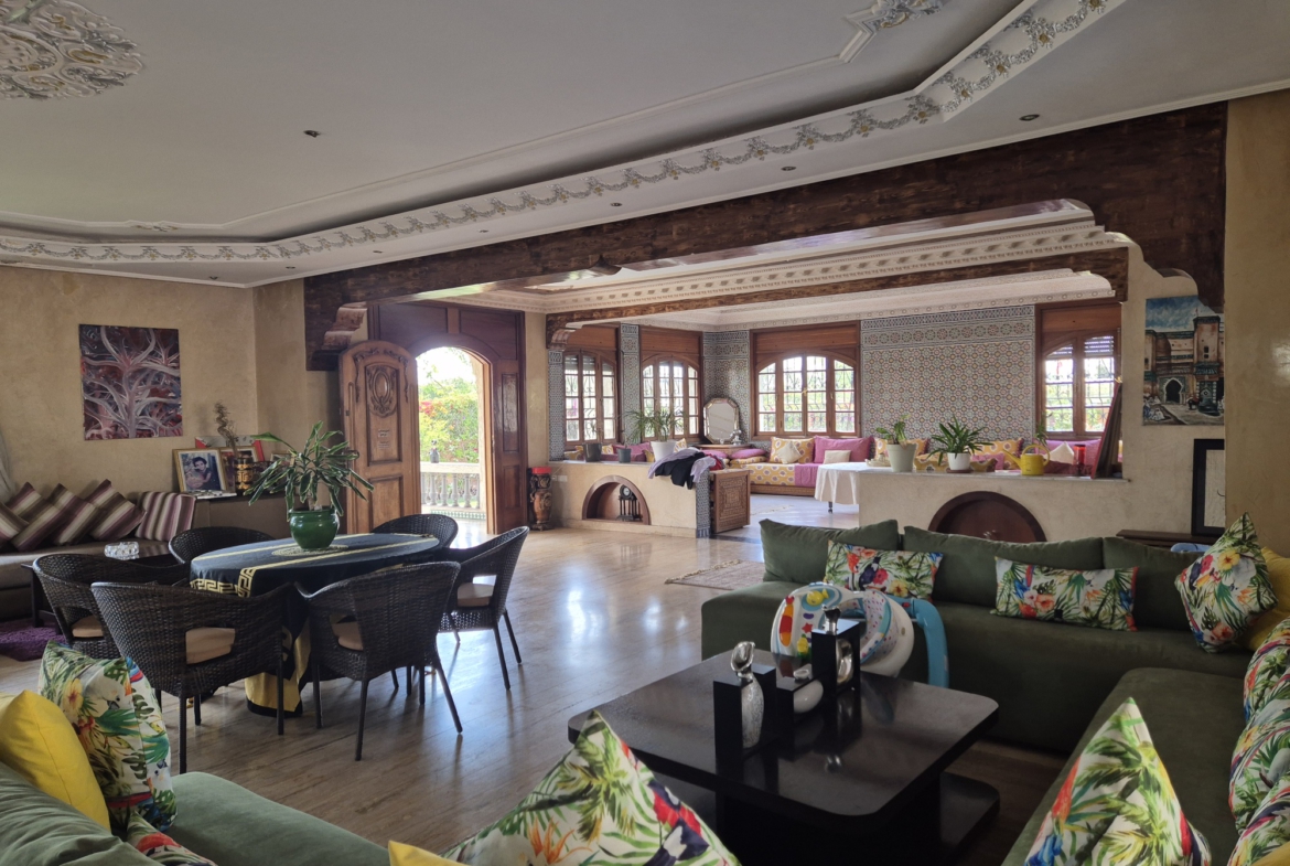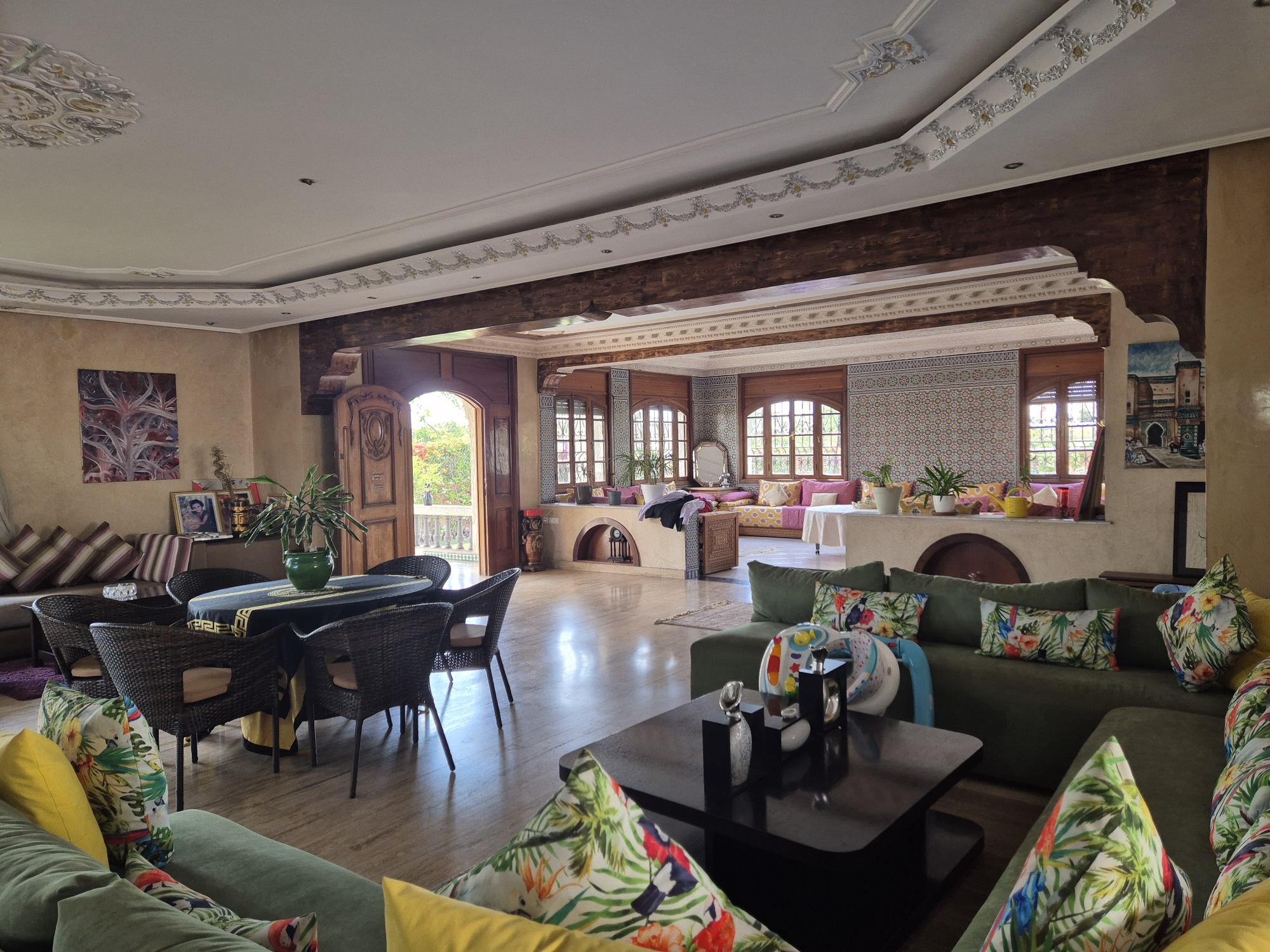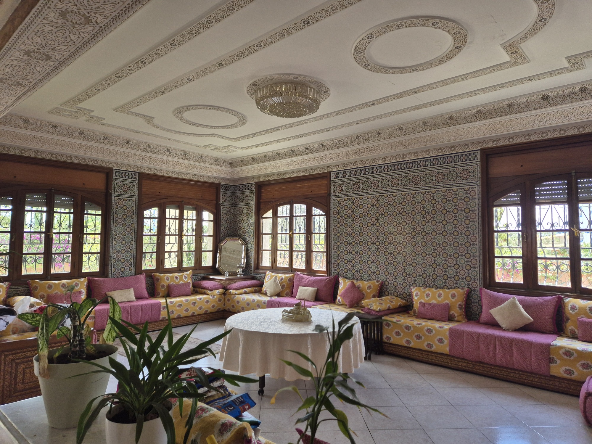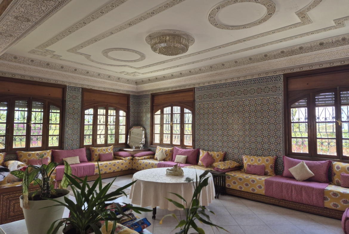 – une réception avec divers espaces dont un salon marocain avec zellij et plafond incrusté